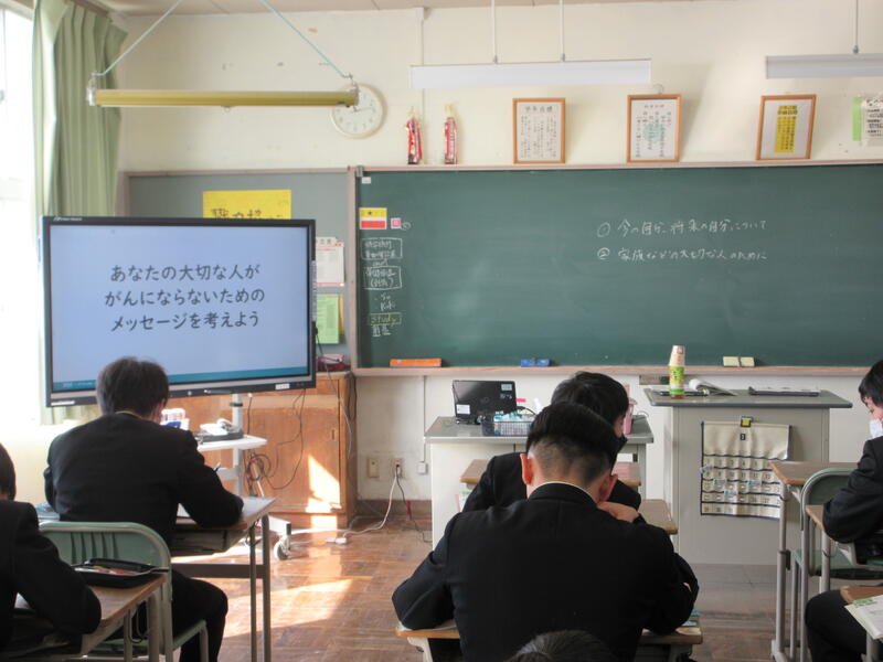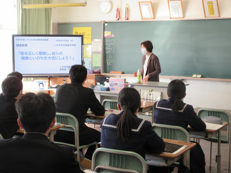 健体育科と助産師さんのT・T(ティーム・ティーチング)で、がん教育を通していのちの大切さを学びました。