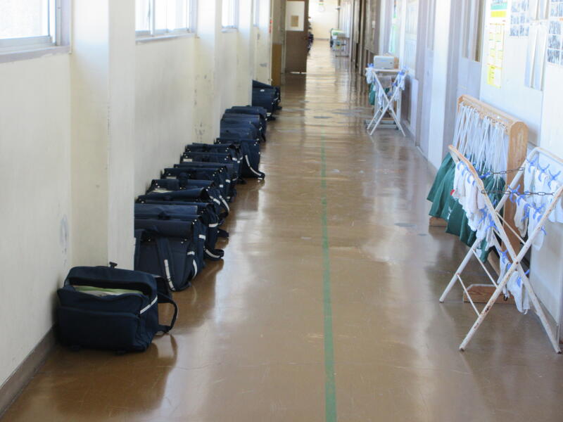 廊下に整然と並んだカバンも、テストの風物詩ですね。