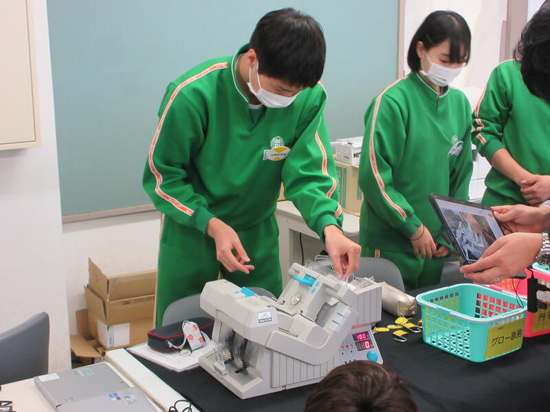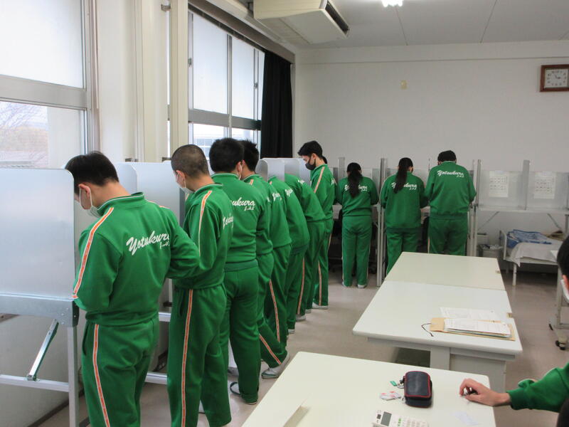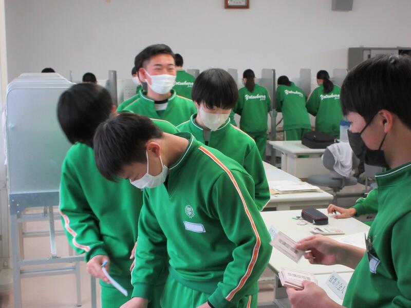 本物の記載台、投票箱、開票機を使用し、投票立会人や開票作業も生徒で分担して行いました。出口調査と開票結果も一致していました。