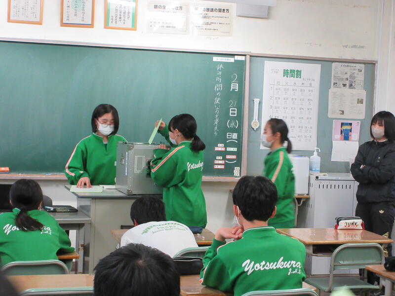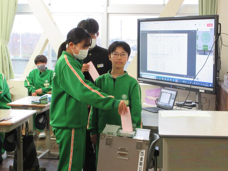 今回は、リモートによる立会演説会及び各学級での投票でした。
