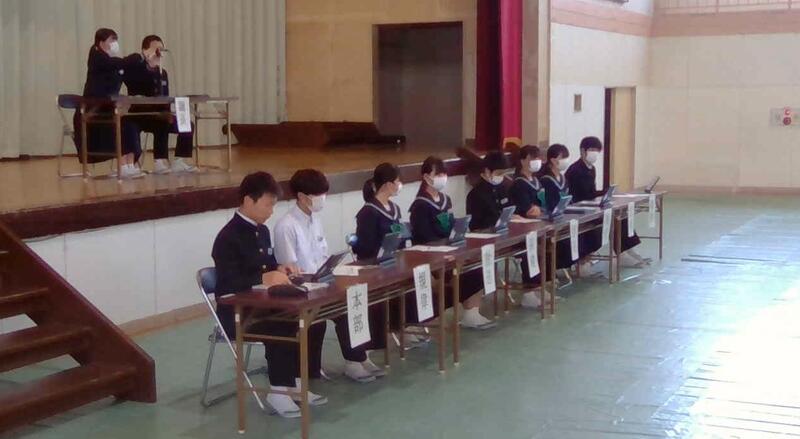 行事もコロナ禍前に戻り、全校生体育館で対面の総会となりました。