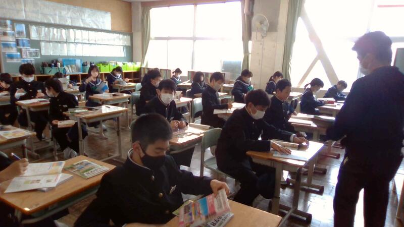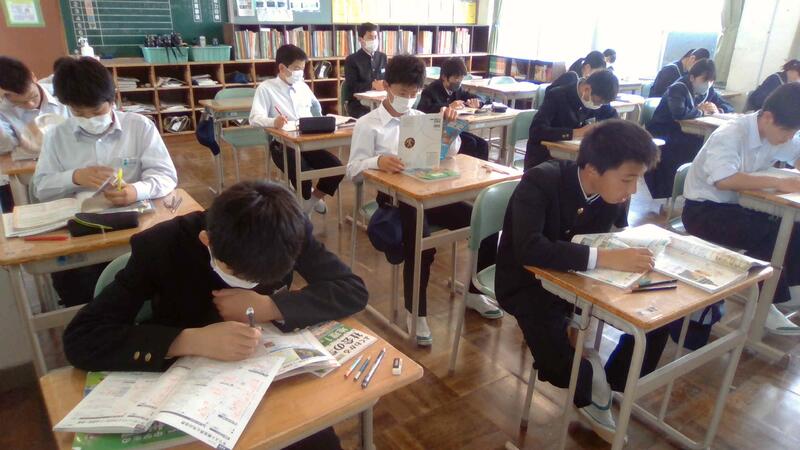テスト前1週間は、朝と昼休みに全校生でテスト勉強に取り組みます。