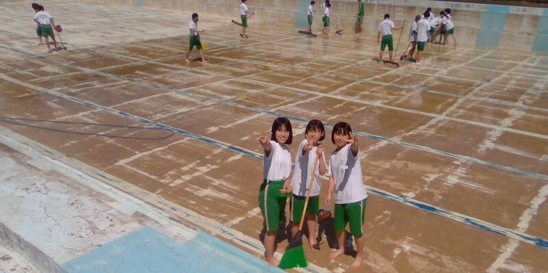 1・2年生は校庭の除草作業、3年生はプール清掃を行いました。