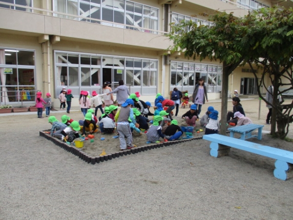 2017年11月8日 16時40分今日は、四倉保育所の年長さんと年中さんが本園に遊びに来てくれました。