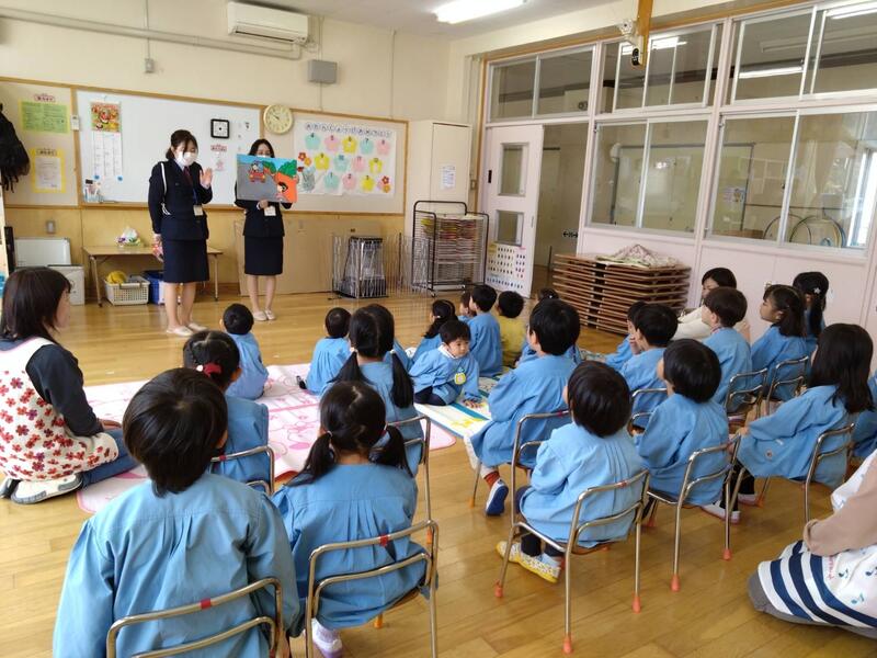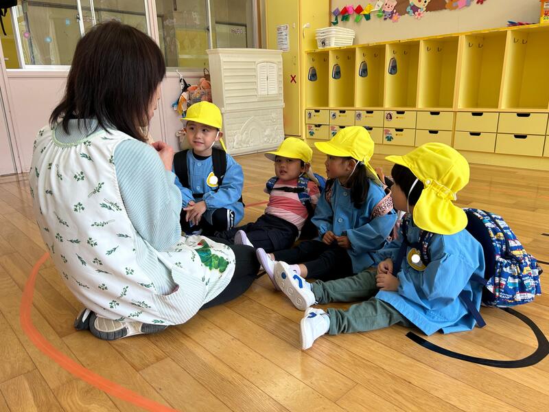 今年度初めての避難訓練のため、各クラスにて紙芝居を使って、地震がきたらどうしたらよいのか、避難するときはどうしたらよいのか、事前指導を行いました。