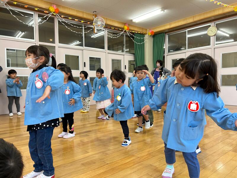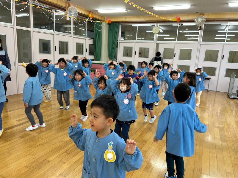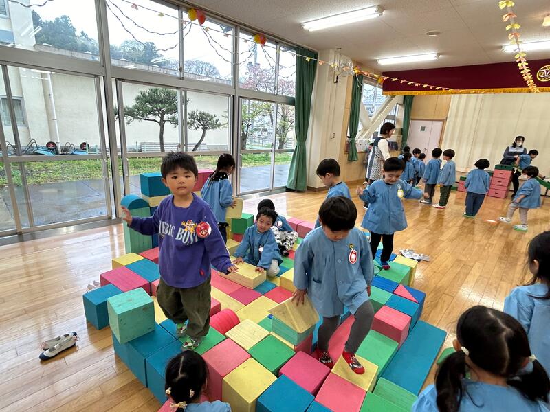 ばら組さんは、遊戯室で体を動かして遊びました。