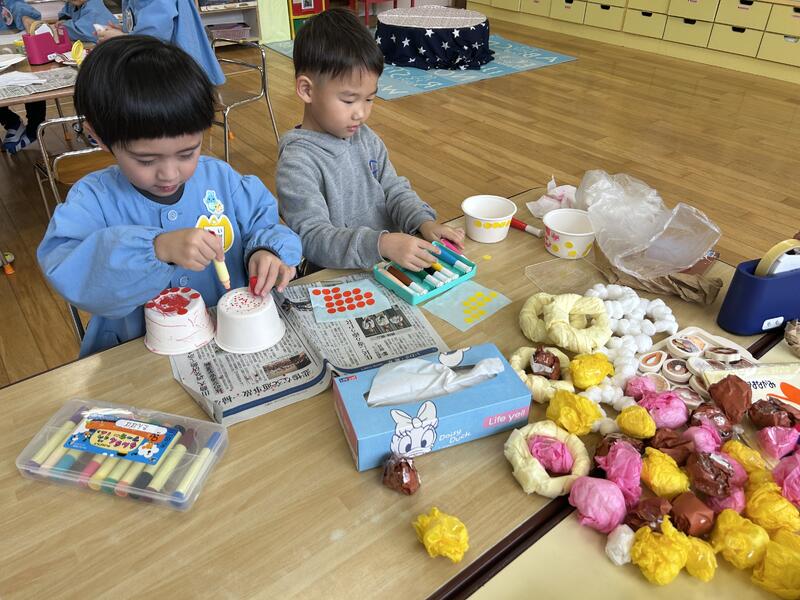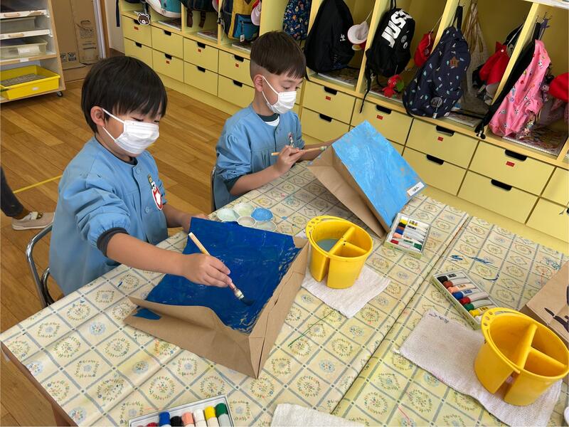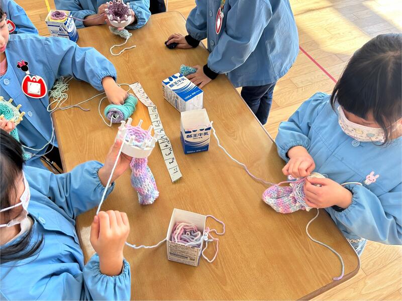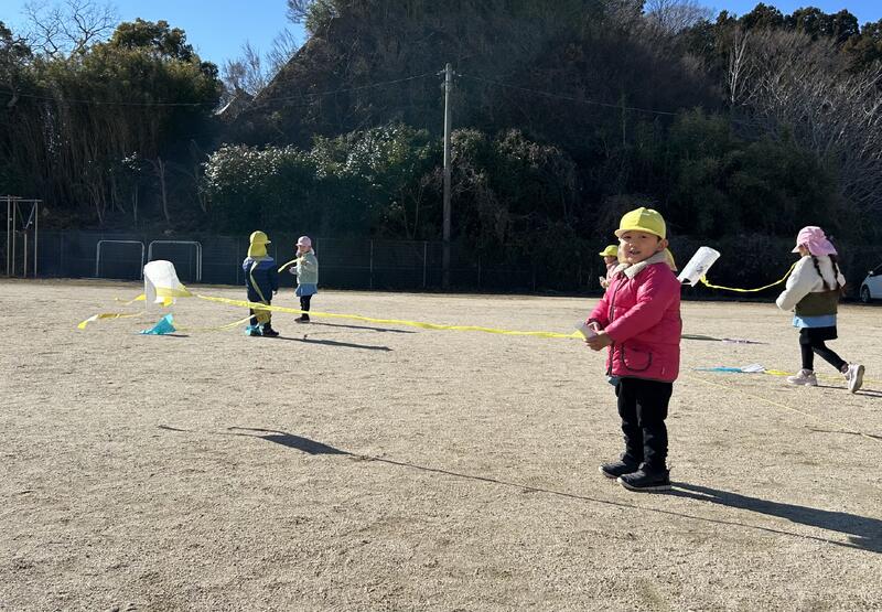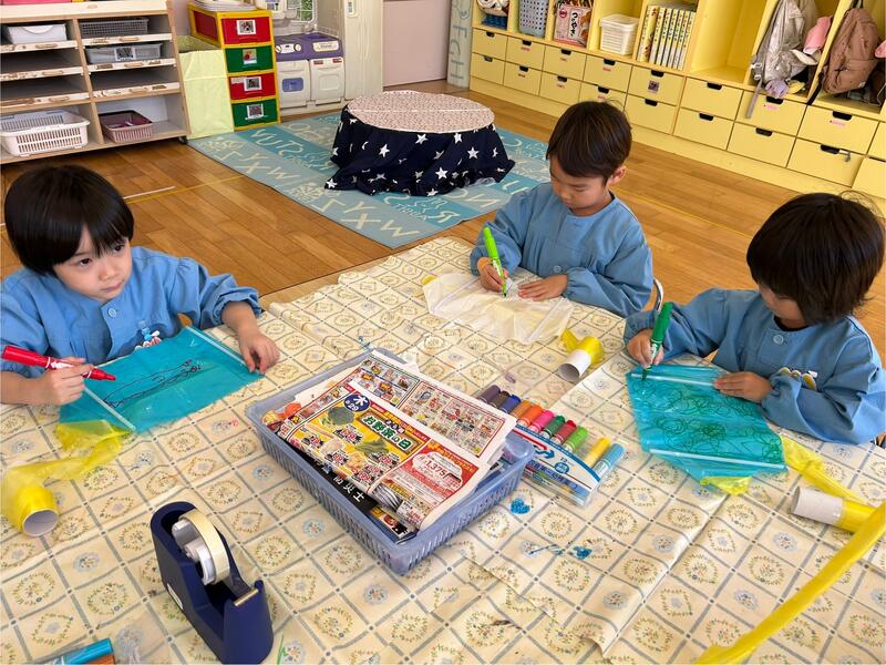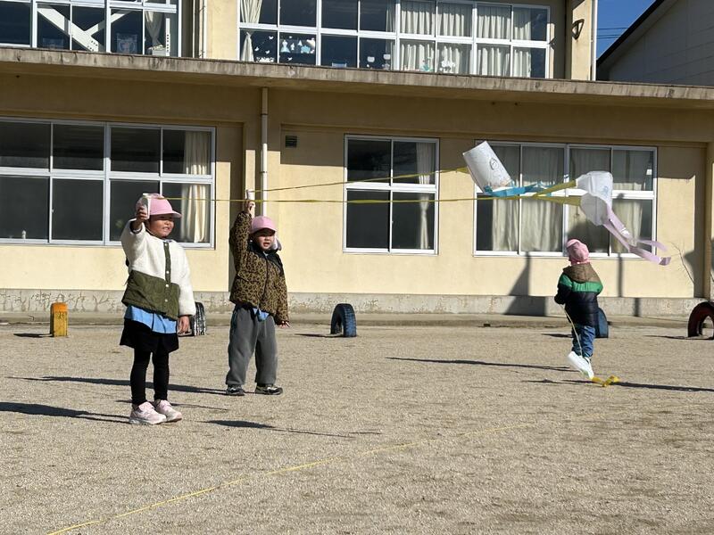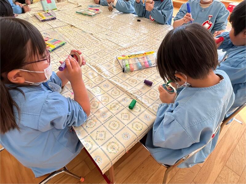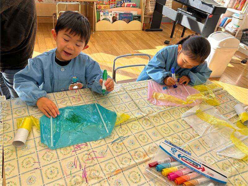 もも組さんとたんぽぽ組さんは、こま作りや凧作りをしました。