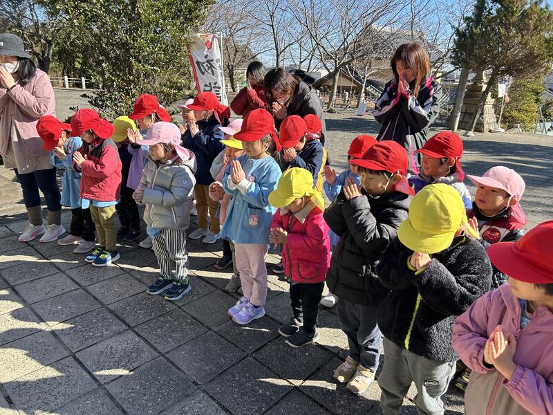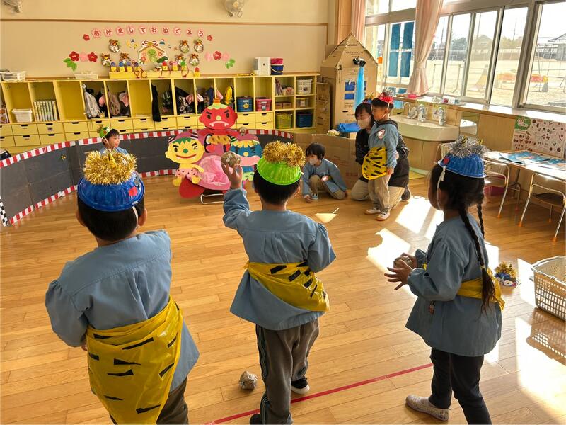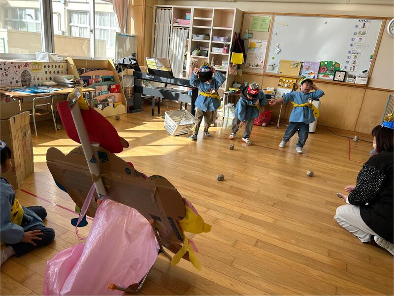 幼稚園でも豆まきをし、みんなの心の中の鬼を退治しましょう!!