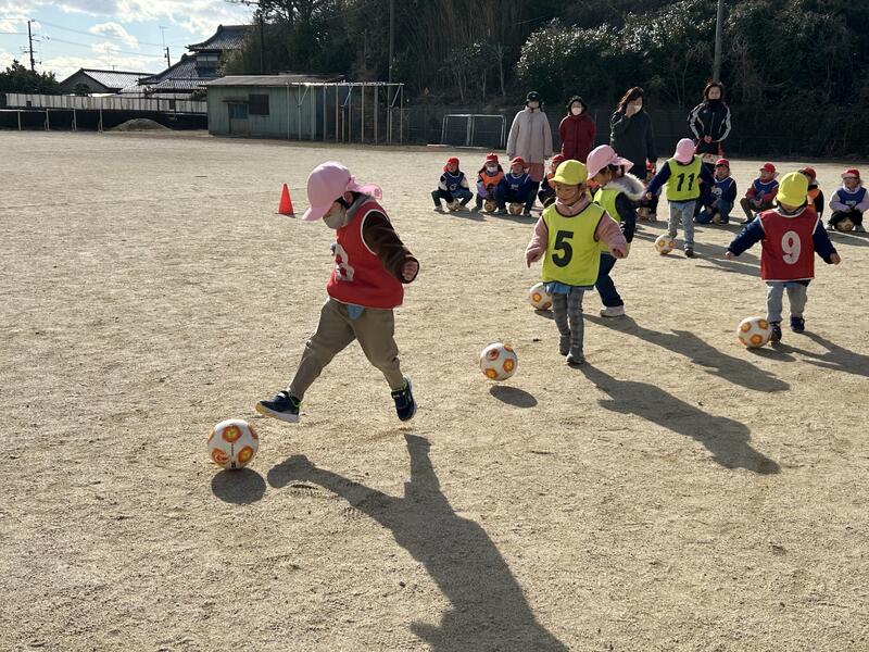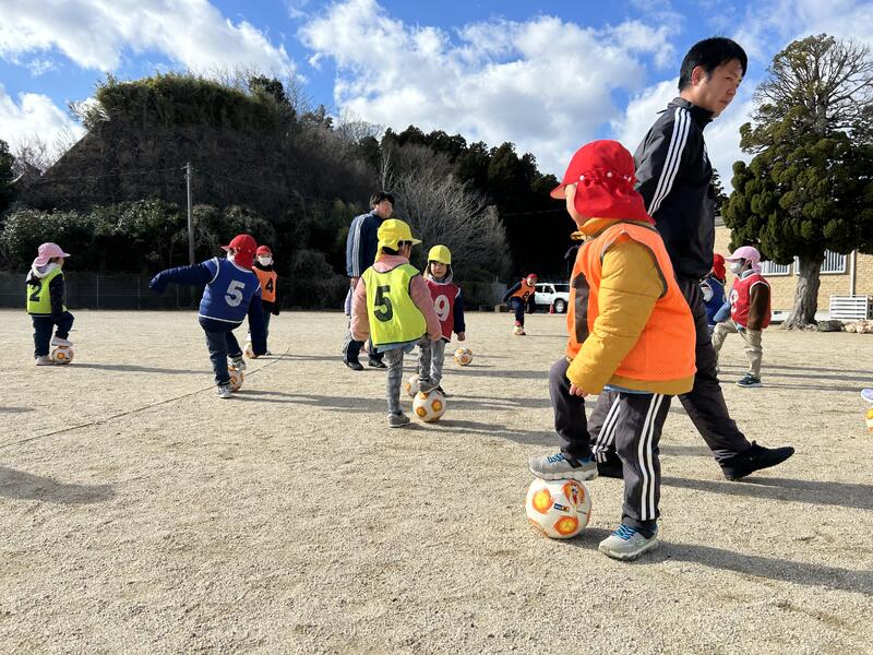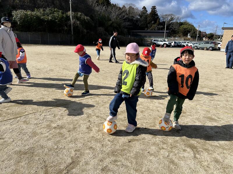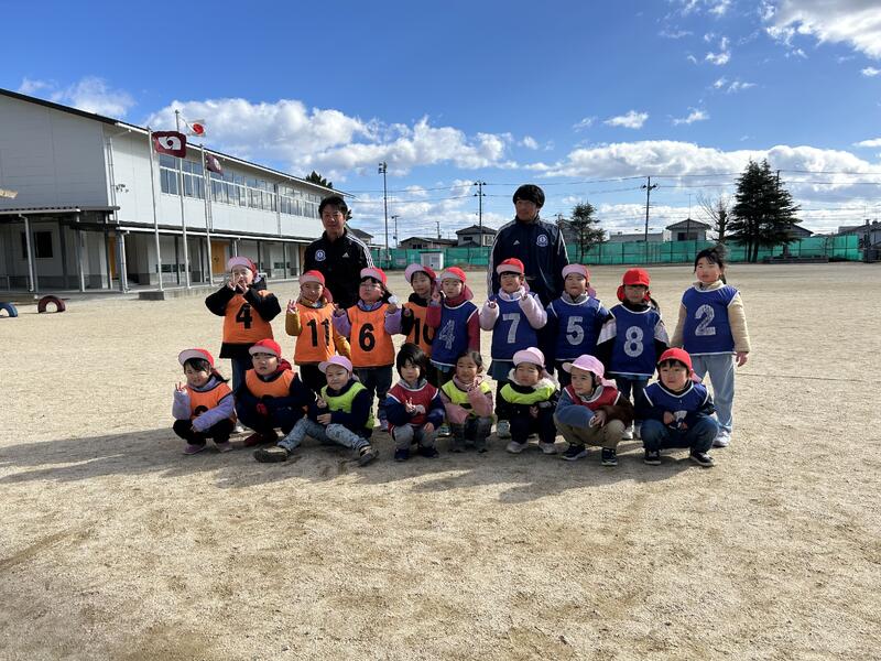 風が強くて寒かったけど、コーチの話をよく聞いて最後まで頑張りました!