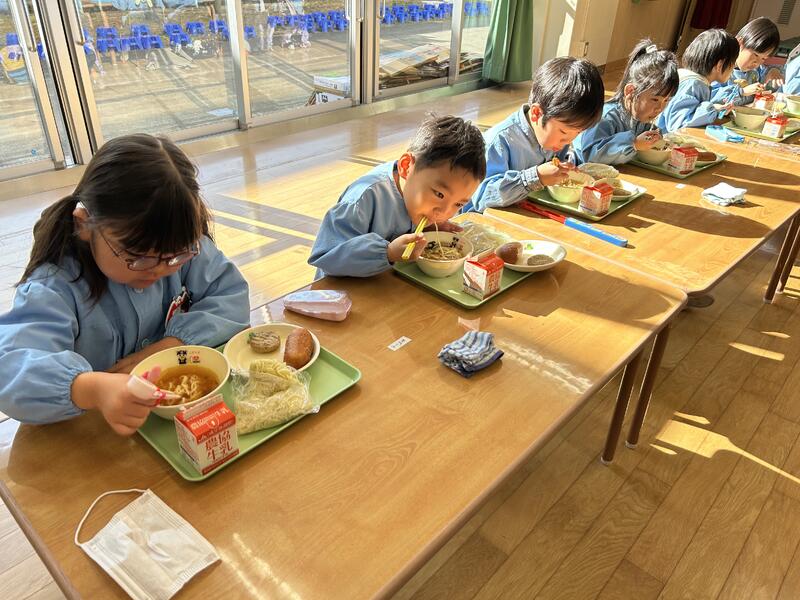ラーメンは食べやすい大きさに自分で切って汁の中に入れました。