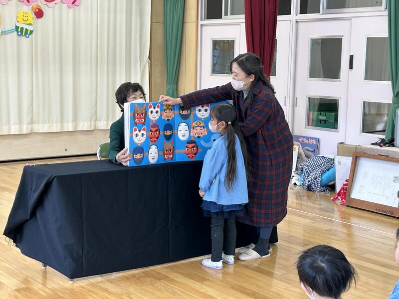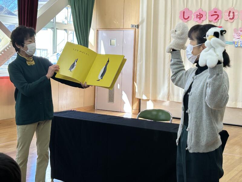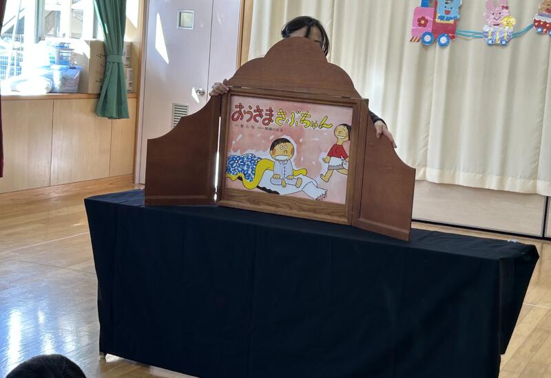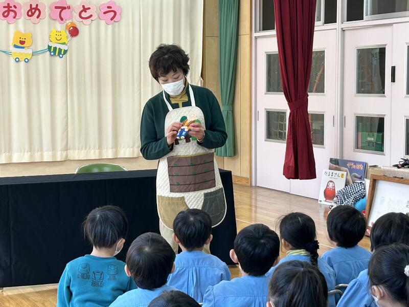 紙芝居や大型絵本、エプロンシアターなど、いろいろなお話をしていただきました。