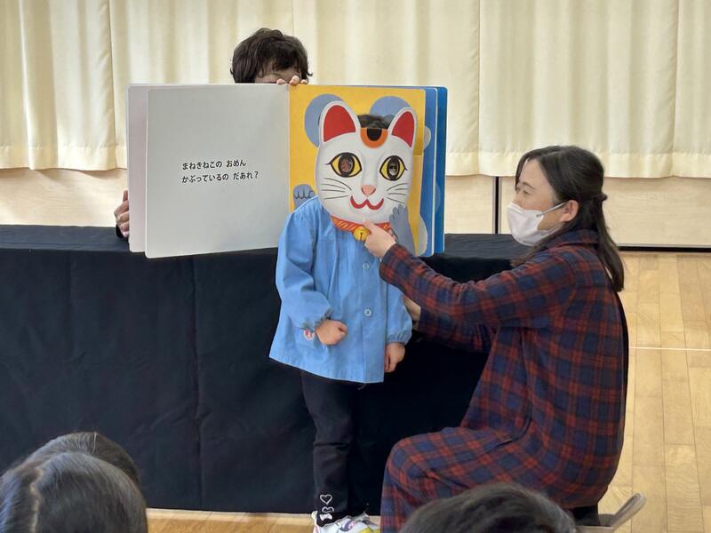 絵本の登場人物と同じ動きをしながら、お話を聞く場面もありました。