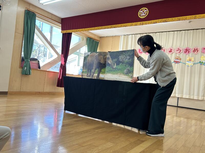 ぞうさんの絵本では、実際の鼻の長さと同じものを見せてもらいました!
