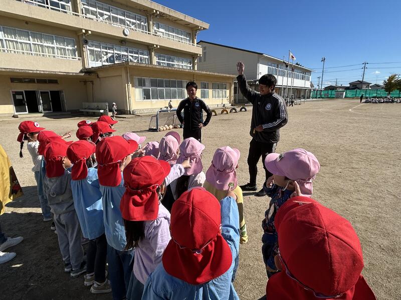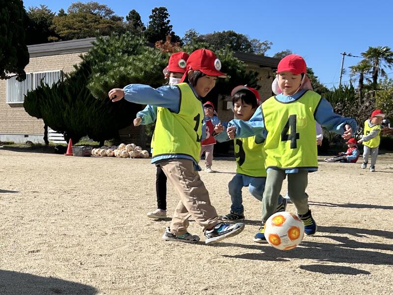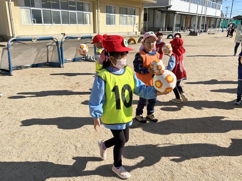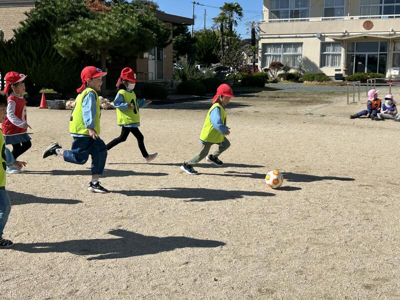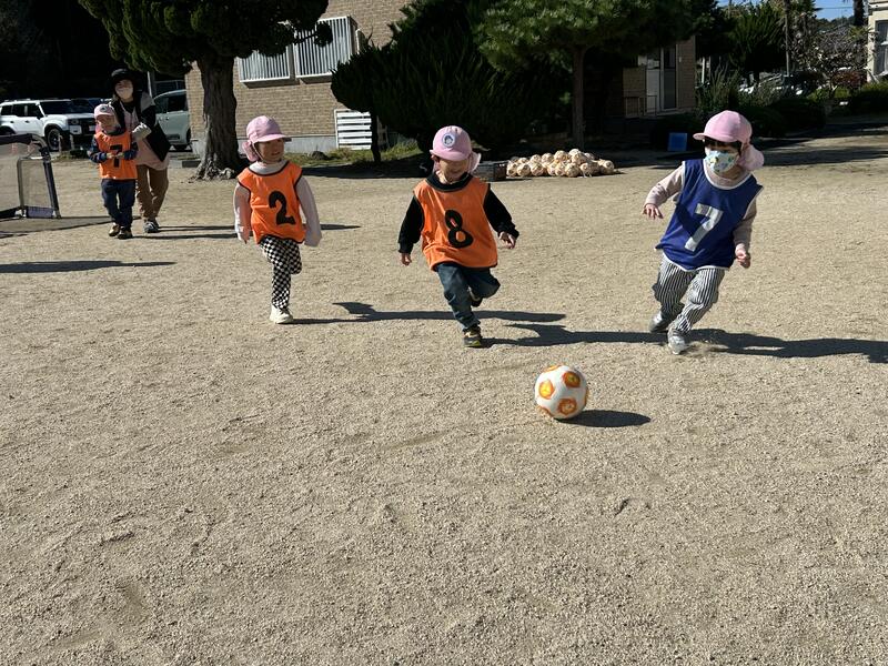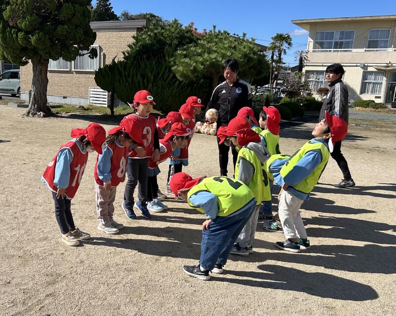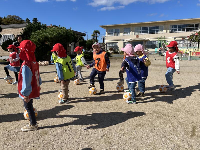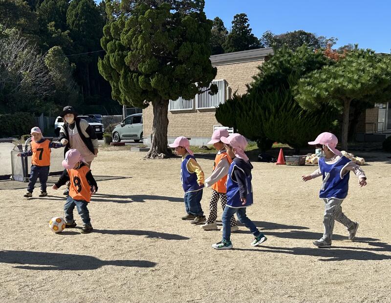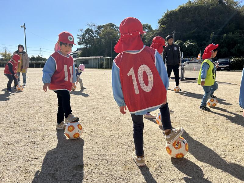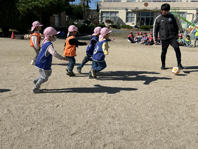 Jヴィレッジより2名のコーチが来てくれ、もも組さんとばら組さんがサッカー教室に参加しました。