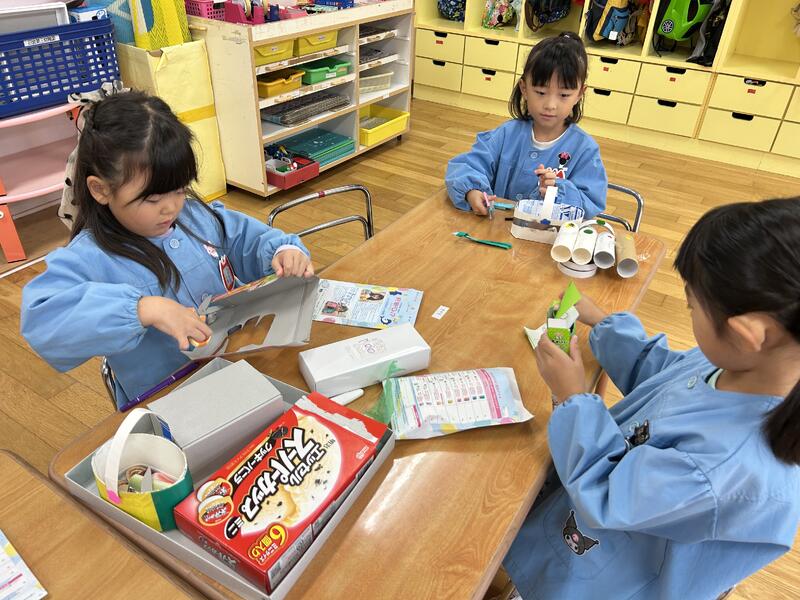 幼稚園に帰ってきてからは、グループごとにお弁当を食べました。