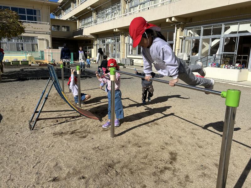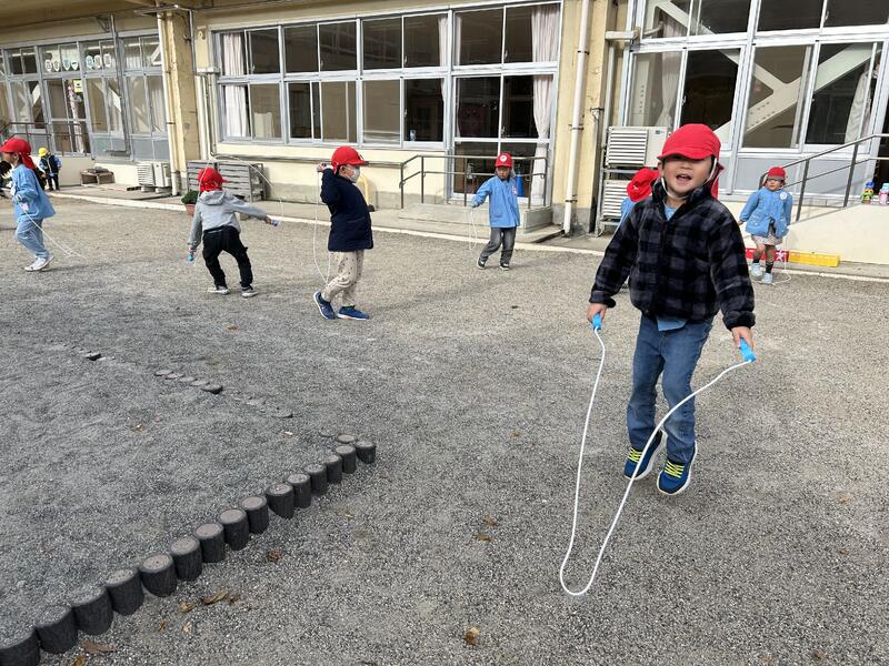 鬼ごっこをしたりなわとびに挑戦したり、体を動かしながら楽しんでいます!