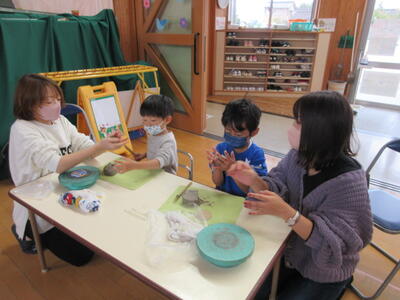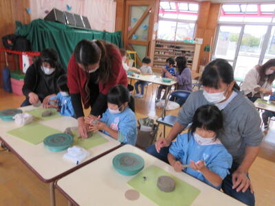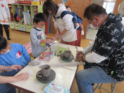 それぞれが、自分で作ってみたいコップや茶わん、お皿を保護者の方と一緒に相談しながら作り楽しむことができました。