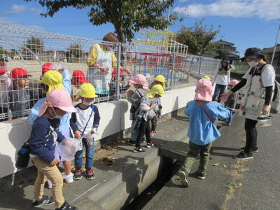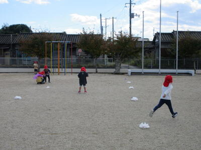 2022年10月20日 16時00分きれいな秋空の下、戸外遊びやお散歩を楽しみました。