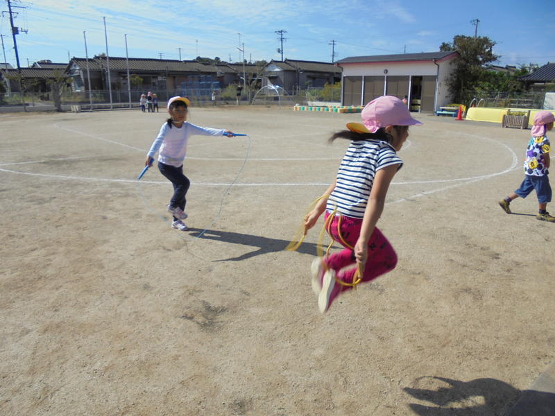 もも組さんは縄跳びに挑戦中