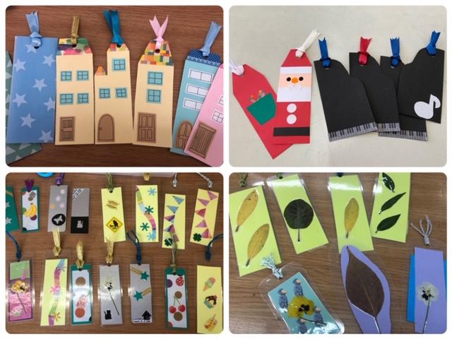 また、11/6(水)には、授業参観で来校する、 教養委員以外の父兄の皆さんにも体験してもらえるよう、 しおりづくりのワークショップを行いました。押し花を使ったり、 型抜きをしたりと、素敵なしおりがたくさんできあがりました。 参加してくださった皆さん、ありがとうございました。