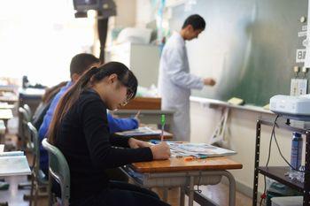 6年2組の理科の様子です。本日は卒業アルバム用の日常生活に関わる写真撮影も行われていました。
