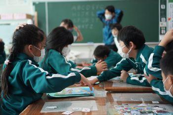 3年2組では、ゲームを通してアルファベットについて学んでいました。