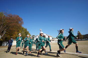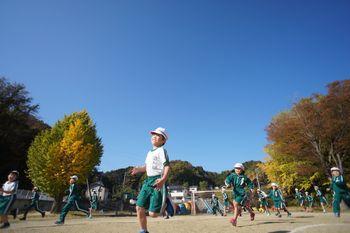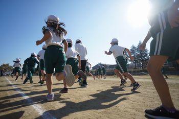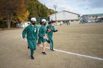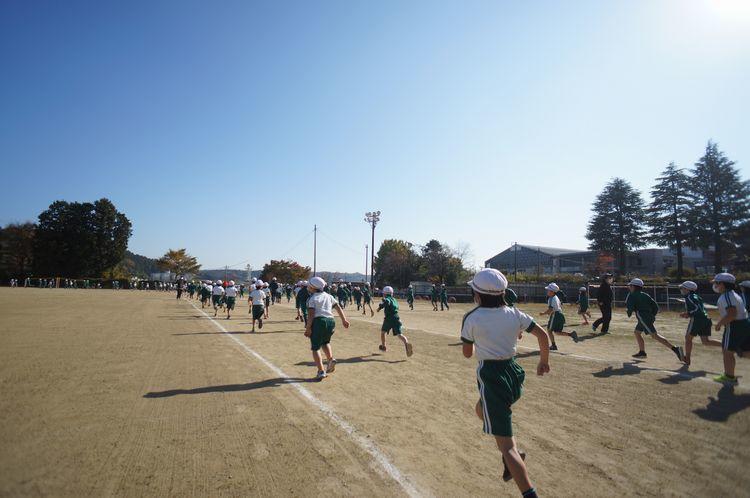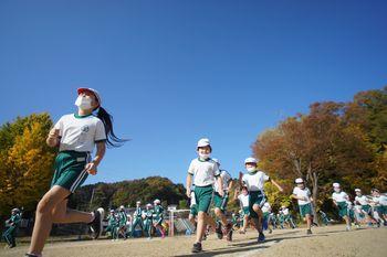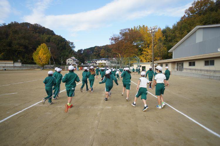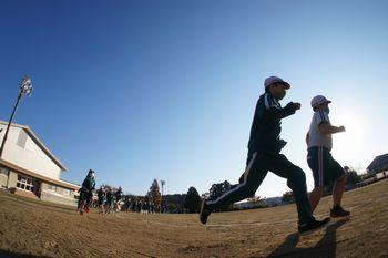 朝の持久走練習。はげまし合い誘い合って、友達と一緒に走るのも楽しいです。