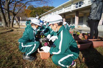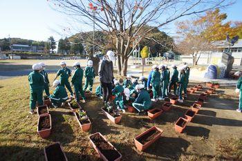 2年生が、ハンジーをプランターに植える作業を行いました。