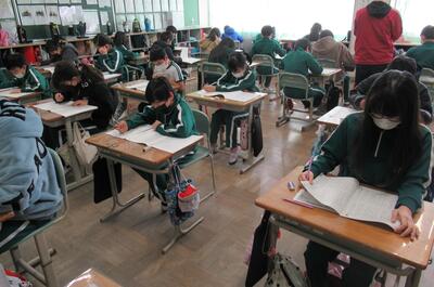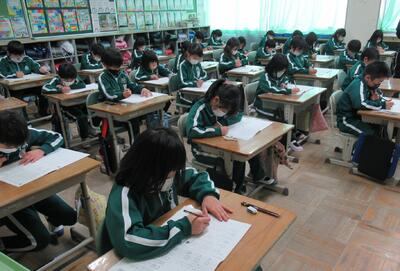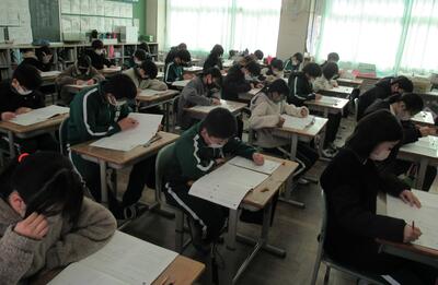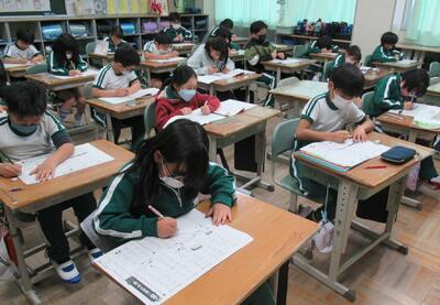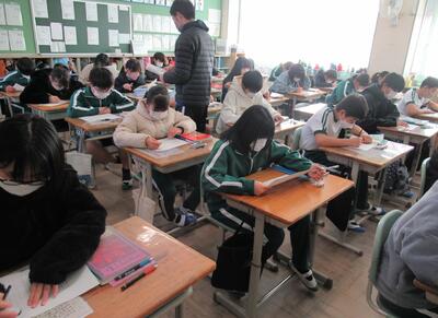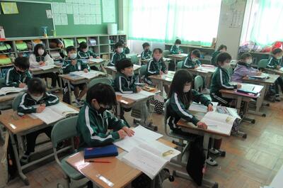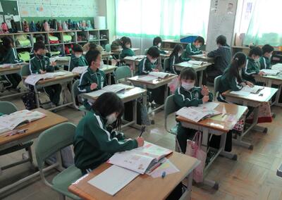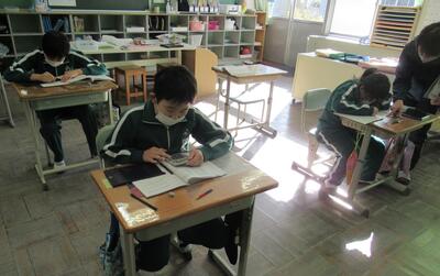今日は、学力テストです。2校時に国語、3校時に算数を行います。