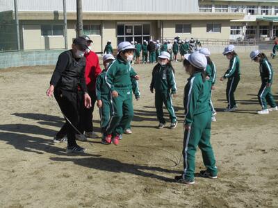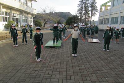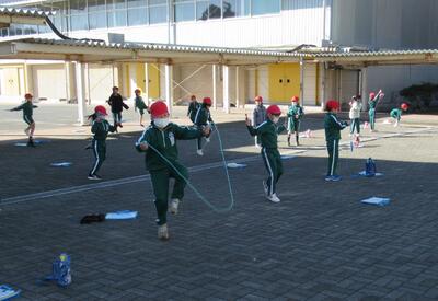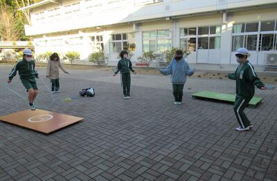 大休憩の時間には、長なわ跳びの練習です。とても上手に跳べています。