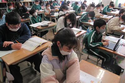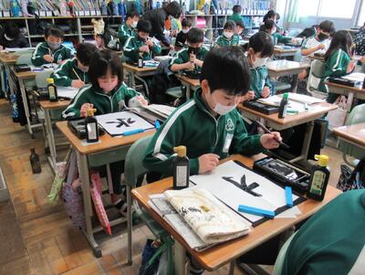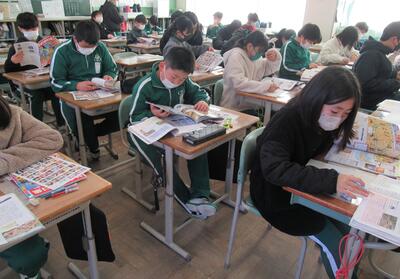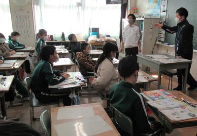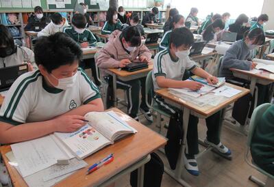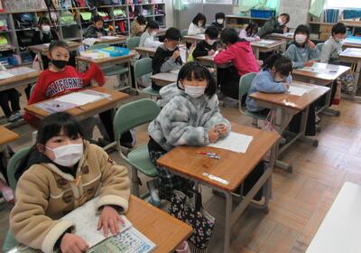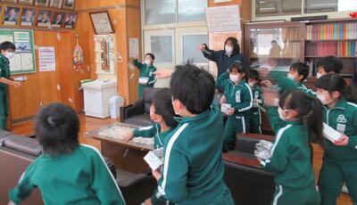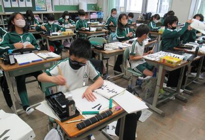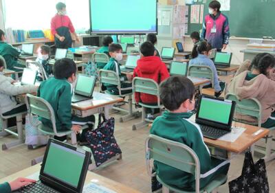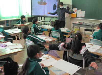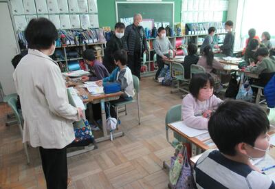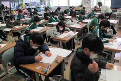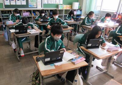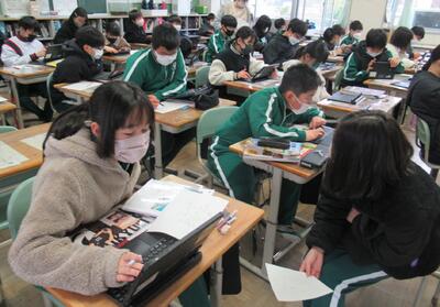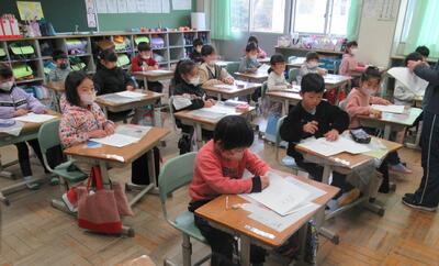 4年生は社会。いわきの自然に関するテーマに沿って調べ学習を行っていました。