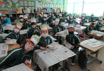 今日は、節分です。さはこ学級のみなさんが職員室と校長室に豆まきに来てくれました。