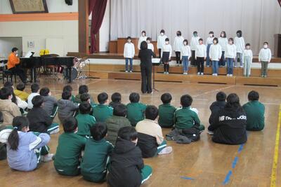 今日は、5・6年生の鑑賞教室。合唱部と吹奏楽部のみなさんが演奏を響かせました。5・6年生は、合唱部の美しいハーモニー、吹奏楽部の繊細で力強い演奏に魅了されていました。合唱部・吹奏楽部のみなさんありがとうございました。
