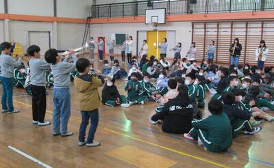 今日は、3・4年生の鑑賞教室です。この2年間、目の前で演奏を聴く機会のなかった3・4年生。演奏が始まると食い入るように合唱部の美しいハーモニーや吹奏楽部の力強い演奏に聴き入っていました。これからは、こういう機会をたくさん増やしていきたいと思います。