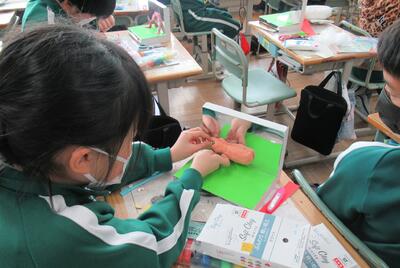 2組は図工です。じしゃくを使って動かす作品をつくります。