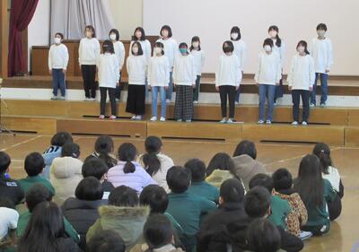 今日は、合唱部と吹奏楽部の演奏を聴く1・2年生の鑑賞教室が行われました。1・2年生は、合唱部の美しいハーモニーや吹奏楽部の力強い演奏に感激していました。