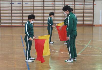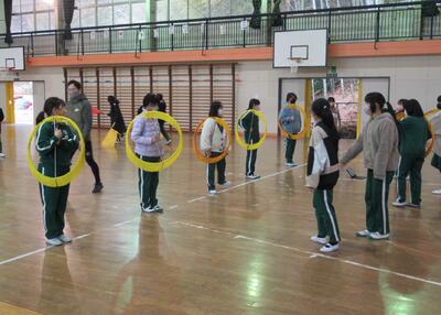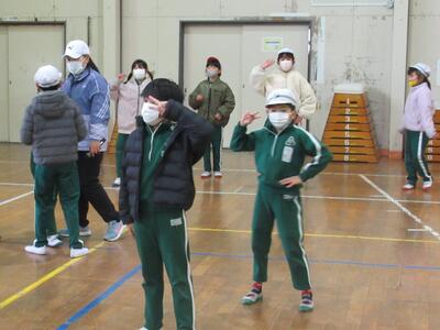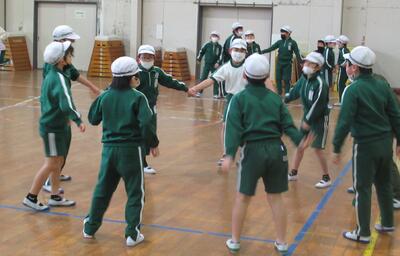 3年生は、体育。グループに分かれて、曲に合わせてダンスです。