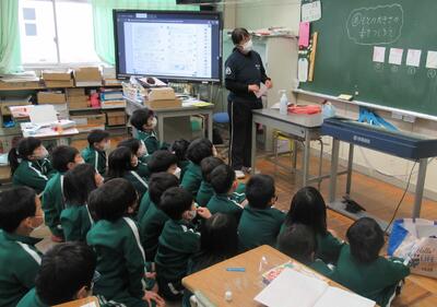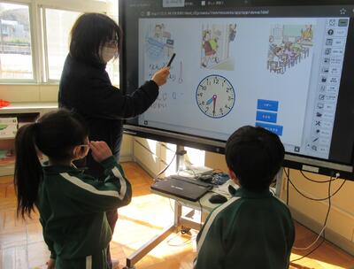 1年生は、ICTサポーターの先生に計算ゲームソフトの使い方を教えてもらっていました。