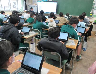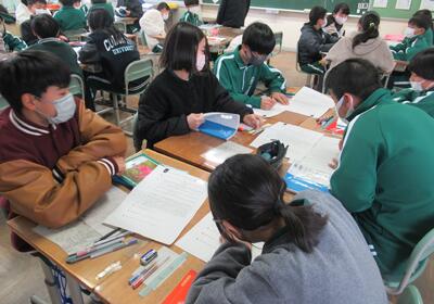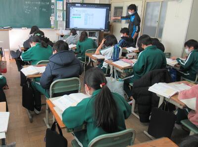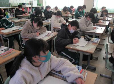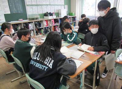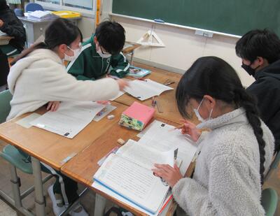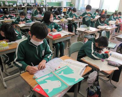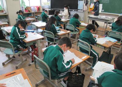 3年生は、国語です。感想文を互いに読み合っていました。