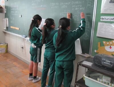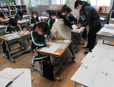 4年生は、算数。小数のわり算に何度も取り組みます。