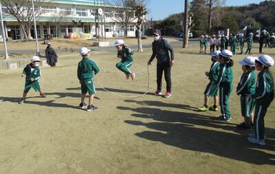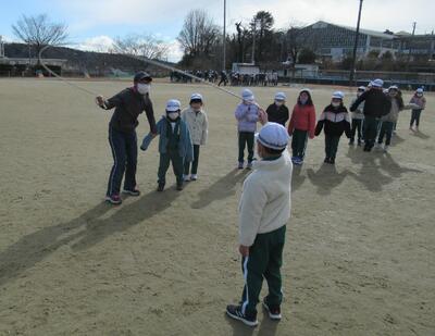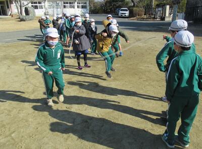 今日から2月に入りました。今日も寒い朝でしたが、朝の時間になわとびの練習をしていました。二重跳びや後ろ二重跳びを上手に跳んでいました。