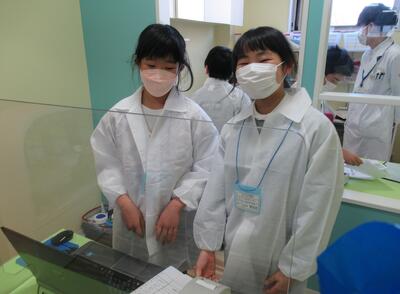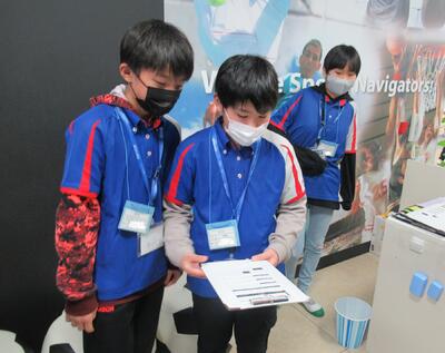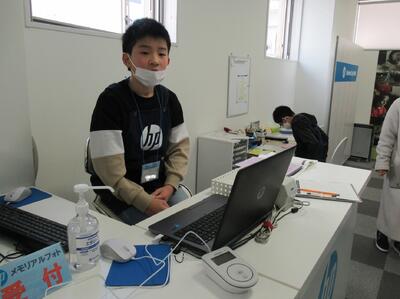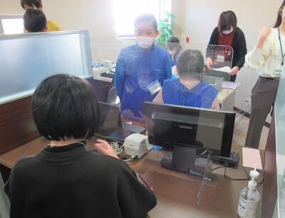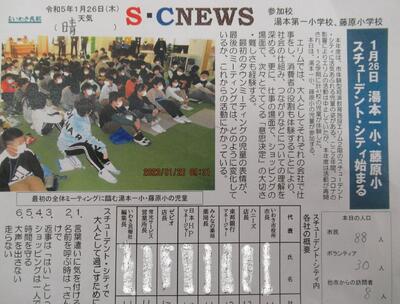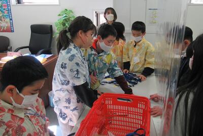 5年生のスチューデント・シティの様子です。仮想の街において児童が住民となり、納税や企業間取引、営業活動などを体験する活動です。企業の一員として働いたり、消費者となってサービスを受けたりと生き生きと活動していました。