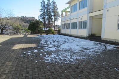 金曜夜に降った雪も校舎裏側部分のみを残し、すっかりなくなりました。