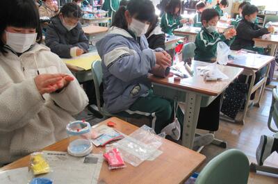 授業の様子です。1年生は、心の鬼を追い出すカードを作っていました。
