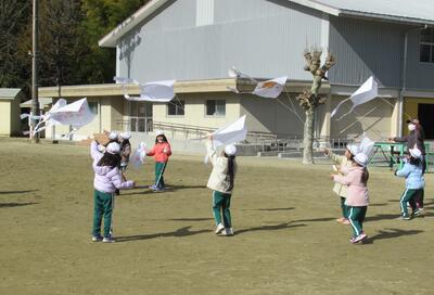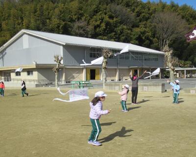 1年生は、生活科で凧あげをしていました。風がある時、ない時、どうすれば凧があがるのか・・・気づくといいですね。