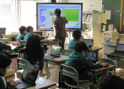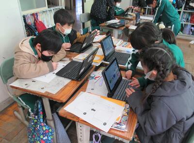 4年生は、ICTサポーターの先生とプログラミングの学習です。