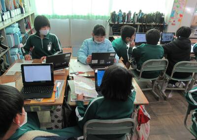 6年生は、ICTサポーターの先生とExcelの使い方を学習していました。