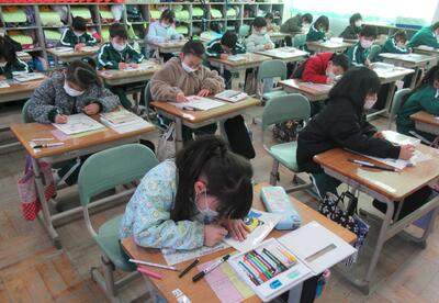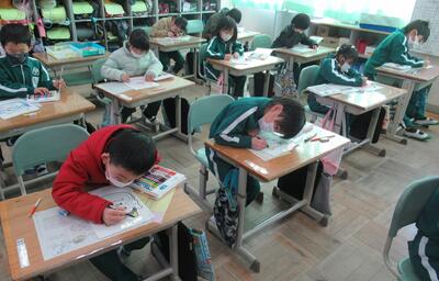3年生は、図工と書き初め会です。