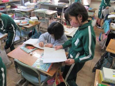 3年生は、社会科で昔と今の道具を調べていました。図鑑の完成を目指してがんばっています。
