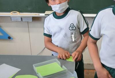 2年生は、算数の授業で身の回りにある直角を見つけていました。